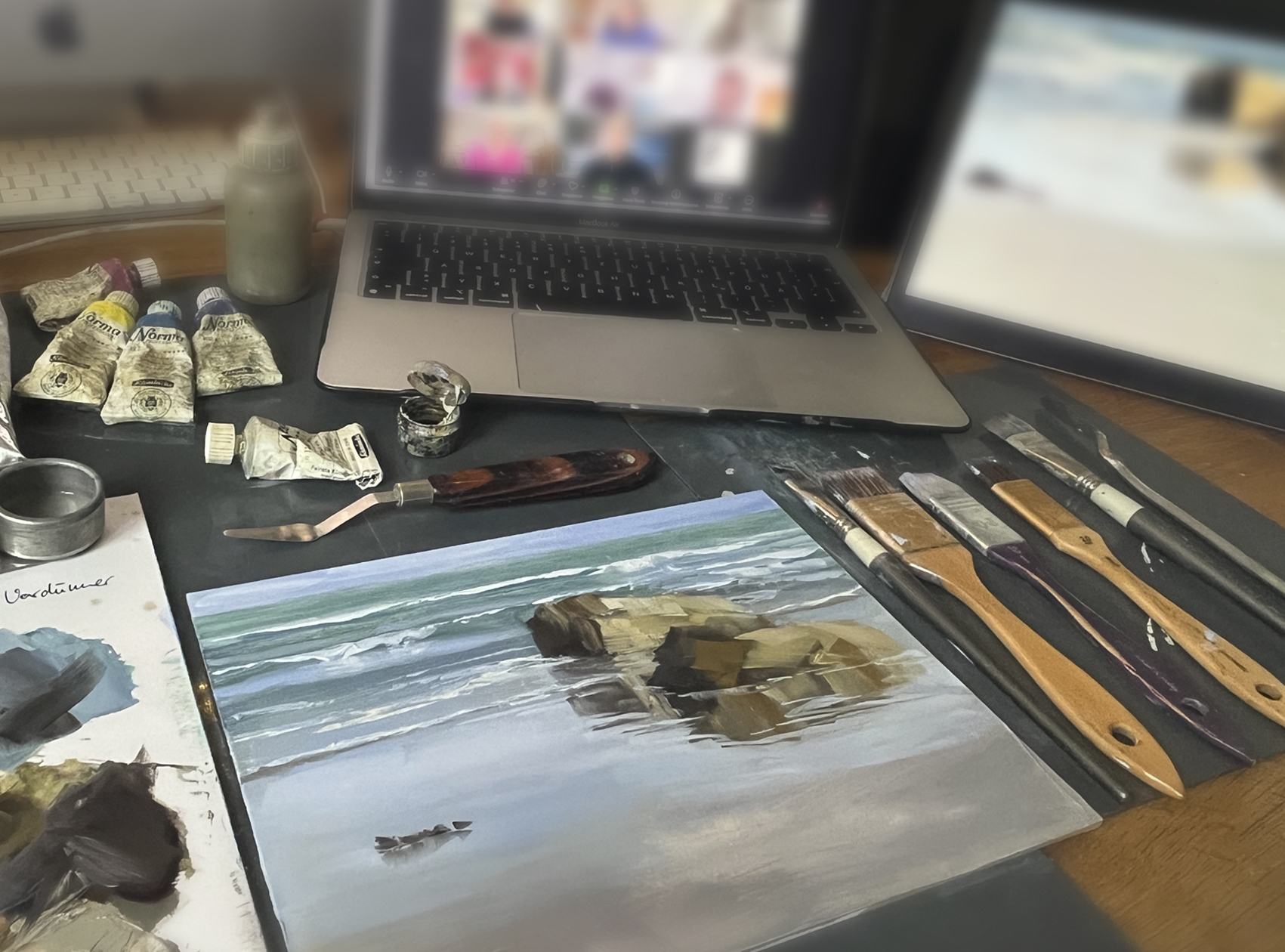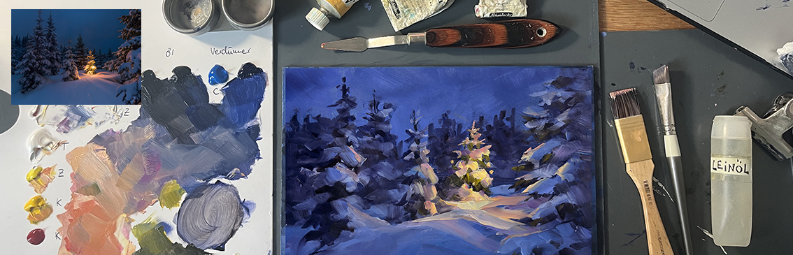 Im Fokus steht das zügige Arbeiten, um später draußen das sich verändernde Motiv innerhalb von 1-2 Stunden malen zu können.