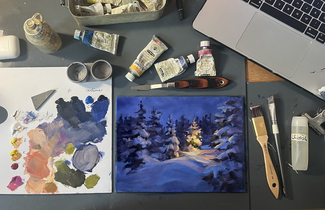 Im Fokus steht das zügige Arbeiten, um später draußen das sich verändernde Motiv innerhalb von 1-2 Stunden malen zu können.