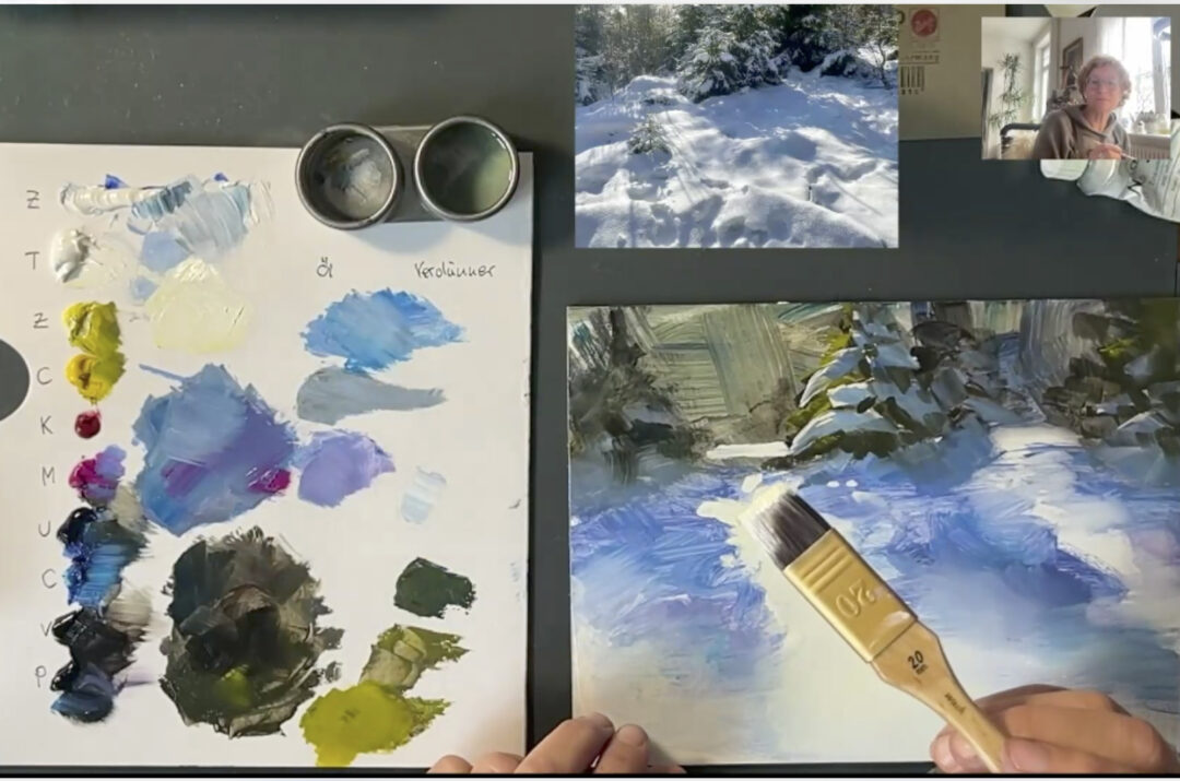 Ich biete ab Januar 26 auch online an, mir beim Malen über die Schulter zu schauen – und Schritt für Schritt mitzumalen.
