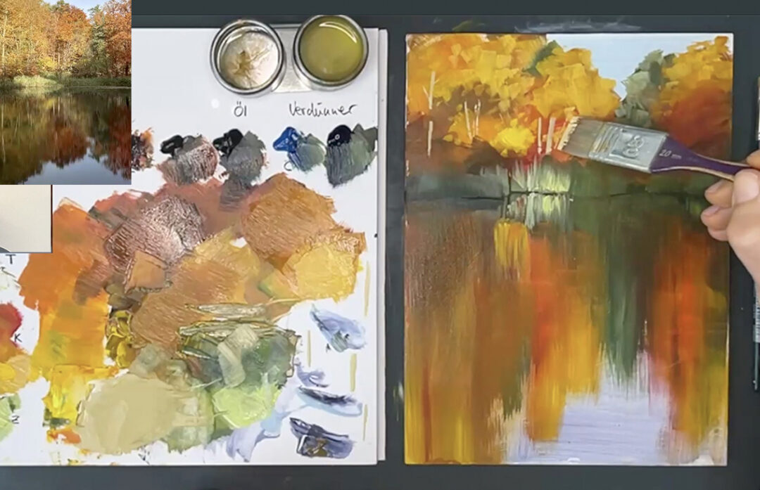 neben dem Material, dem Alla Prima Farbauftrag, dem Mischen der Farben werde ich besonders auf die Vereinfachung und die Bildgestaltung eingehen.